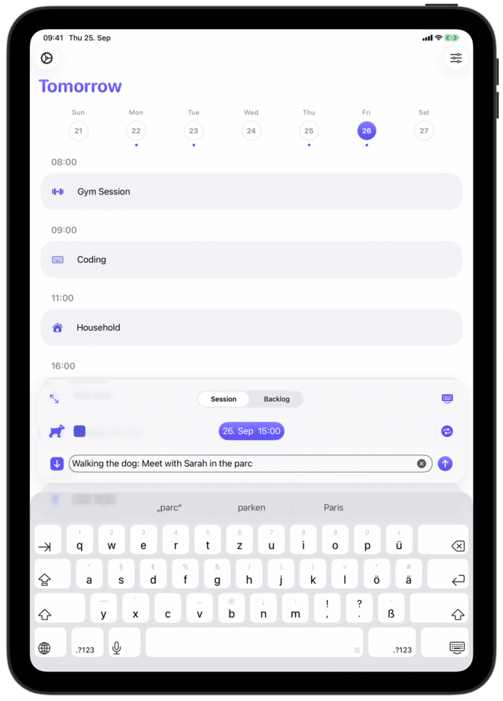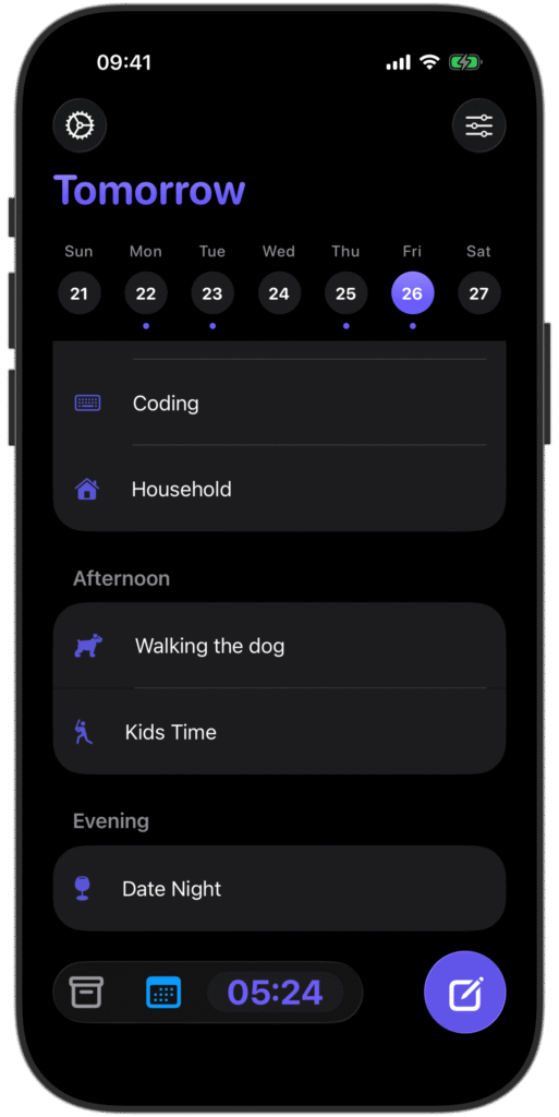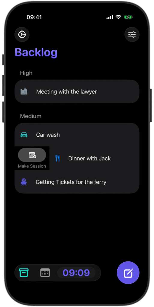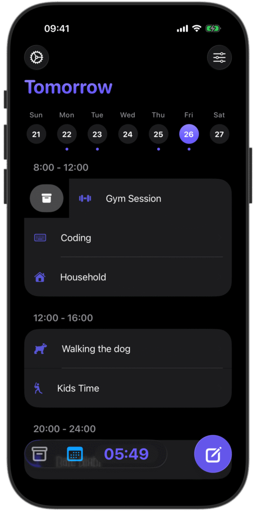 A clean and minimal Daily Planner that won’t force you to stay on time… …with various grouping options to keep your day flexible if a session takes longer – or shorter… …offering a Detail View that offers all you need… …equipped with Icons, Color Tags and a Pomodoro Timer to keep your day organized in a breeze… …and a Backlog for everything that doesn’t need to be scheduled right away to free your mind … …also available for iPadOS and macOS…